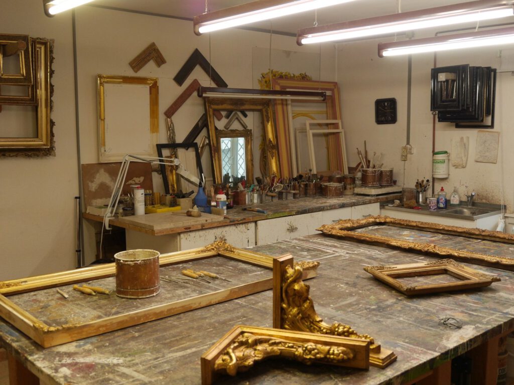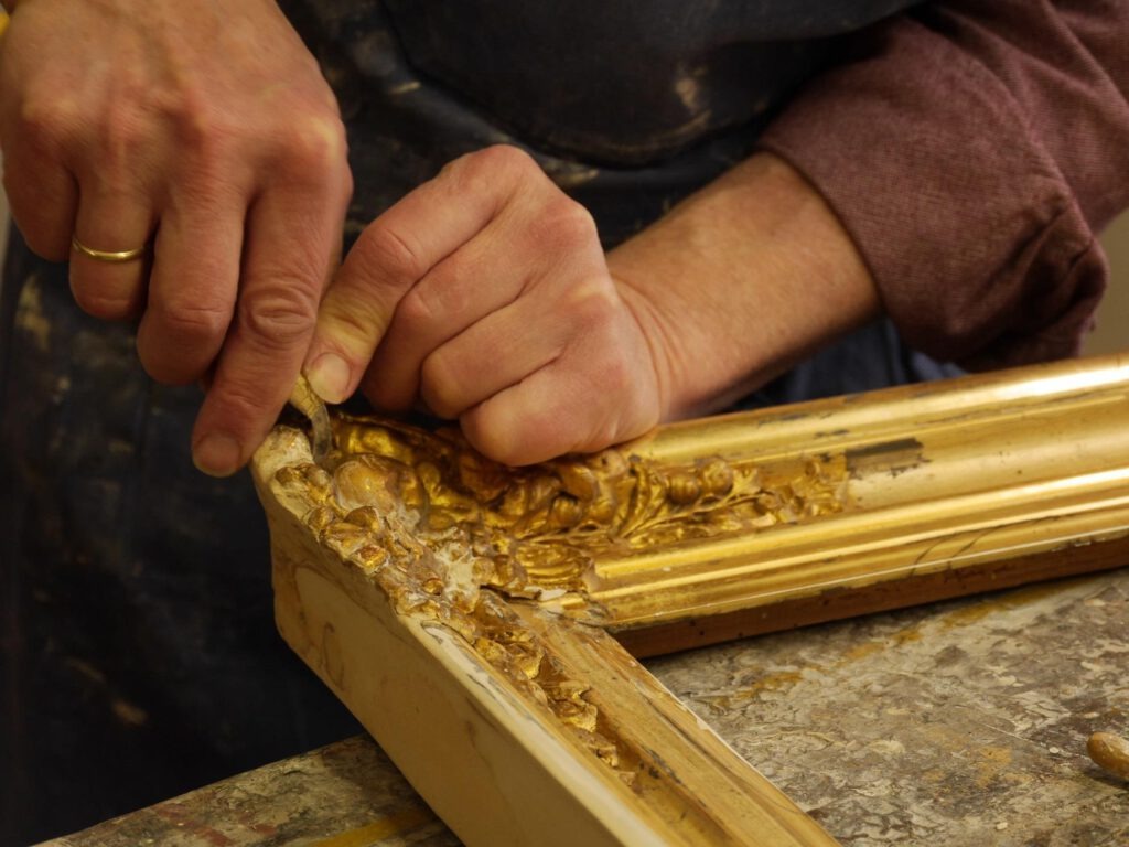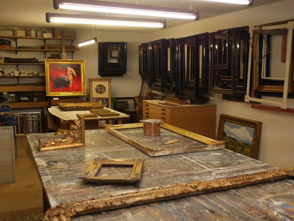 Antike Rahmen und Holzskulpturen werden in der eigenen Werkstatt restauriert. Eine enge Zusammenarbeit mit Gemälde-, Papier-, Möbelrestauratoren gewährleistet die fachgerechte Erhaltung von Werken und Objekten der Kunstgeschichte.